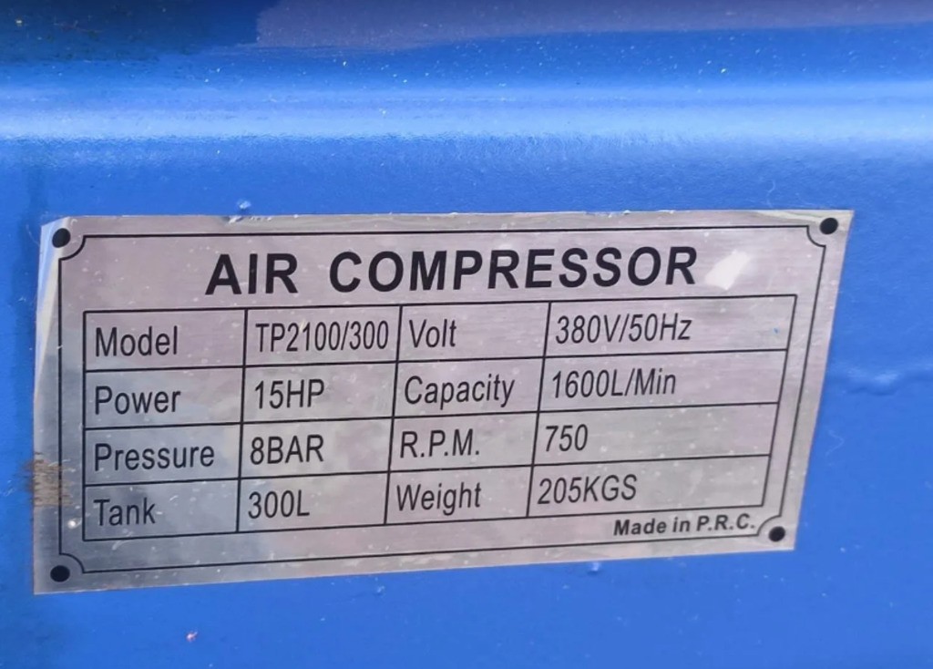- Ресивер 300 л — большой запас сжатого воздуха для бесперебойной работы оборудования.