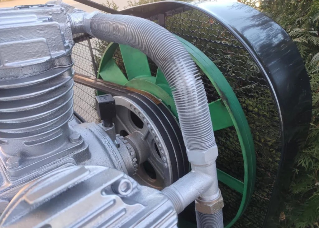 - Корпус компрессора обработан антикоррозийным составом перед покраской, что обеспечивает долговечность и устойчивость к влаге.