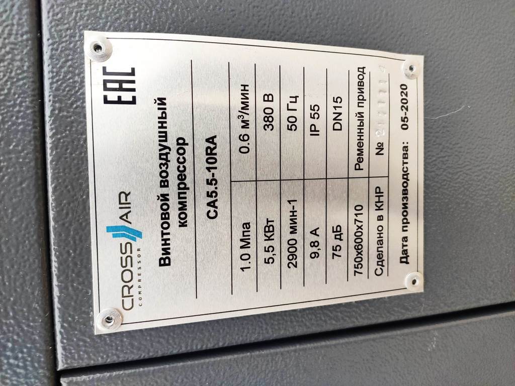 Винтовой компрессор CrossAir CA5.5-10RA 5,5 кВт, 600 л/мин