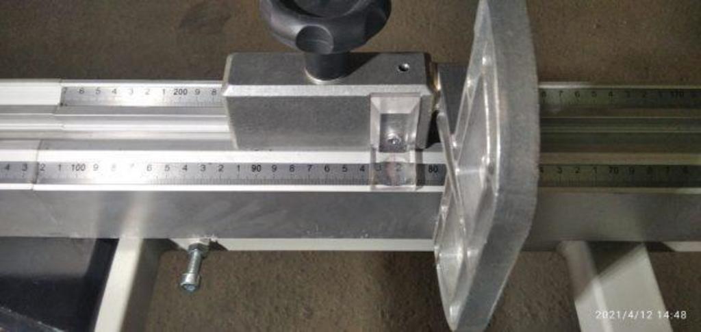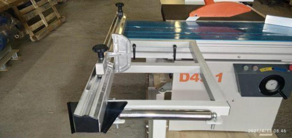 Усиленный форматный стол оснащен телескопической поддержкой, упрощающей обработку крупноформатных заготовок. Для удобства оператора предусмотрены механические регулировки высоты и наклона пильного узла (до 45°) со встроенной стрелочной индикацией. Задняя упорная линейка имеет транспортир, возможность продольного перемещения и надёжный фиксатор, что делает настройку быстрой и точной.
