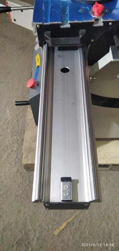 Жесткая сварная станина с литым основным столом гарантирует устойчивость конструкции и отсутствие вибраций даже при длительной эксплуатации. Роликовая каретка со стальными цилиндрическими направляющими обеспечивает плавное и точное перемещение, что особенно важно при работе с ламинированными плитами, МДФ и ДСП.