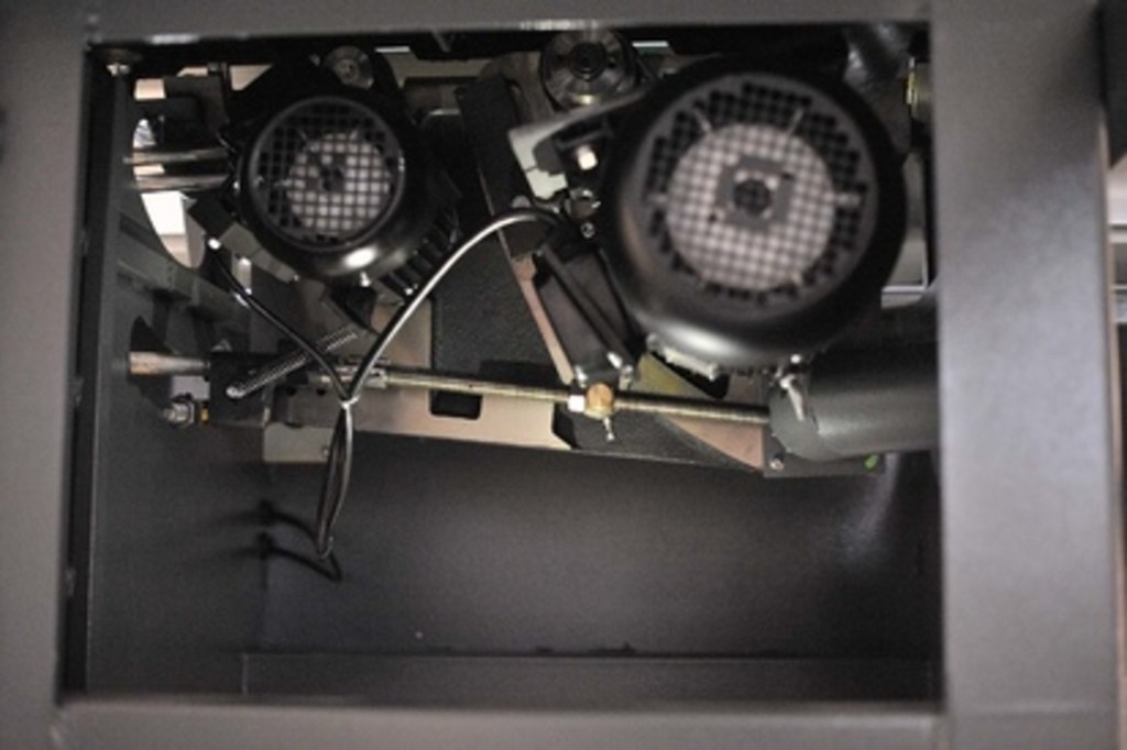 Пильный узел установлен в жёстком литом корпусе, который минимизирует вибрации и обеспечивает стабильность реза. Станок оснащён двумя независимыми электродвигателями — для основной и подрезной пилы. Такая система обеспечивает максимальную надёжность и защиту от перегрузок, а также идеально ровный рез без сколов даже на ламинированных поверхностях.