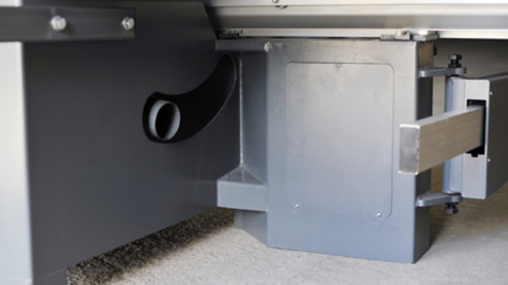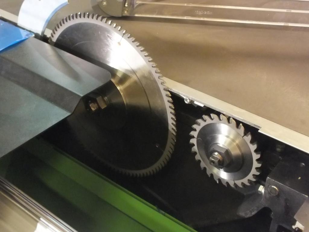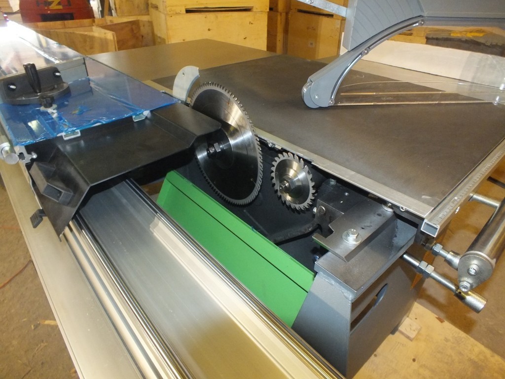 Пильный узел размещён в литом корпусе, что снижает вибрации и обеспечивает идеальную геометрию распила. В состав узла входят две пилы — основная и подрезная, каждая с отдельным электродвигателем. Это решение защищает систему от перегрузок и позволяет выполнять чистый рез без сколов даже на ламинированных плитах.