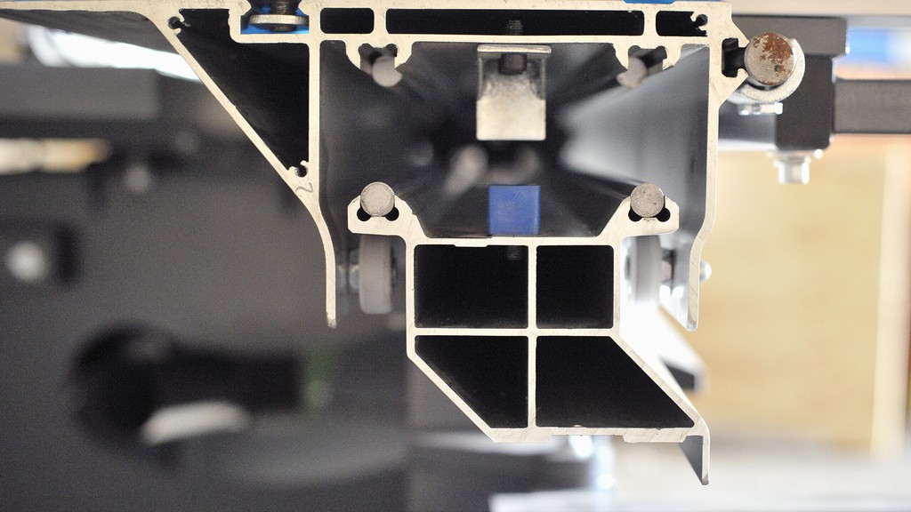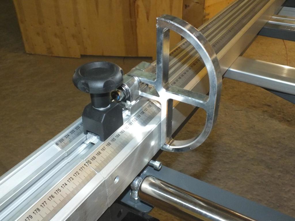 Благодаря усиленной роликовой алюминиевой каретке длиной 3200 мм и шириной 410 мм с стальными цилиндрическими направляющими, станок обеспечивает безупречную точность и чистоту реза. Многокамерная конструкция профиля повышает жёсткость и устойчивость к скручиванию, а многоточечная система фиксации с удобным рычагом гарантирует стабильное положение каретки во время работы.