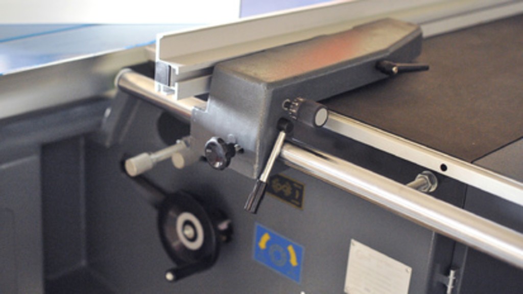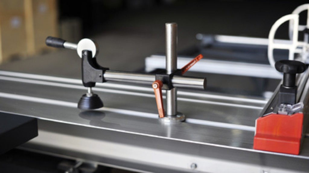 Наружная регулировка подрезного устройства, поворотная штанга защиты пилы, задняя поворотная линейка с транспортиром, а также эксцентриковый прижим делают эксплуатацию станка безопасной, точной и максимально комфортной для оператора.