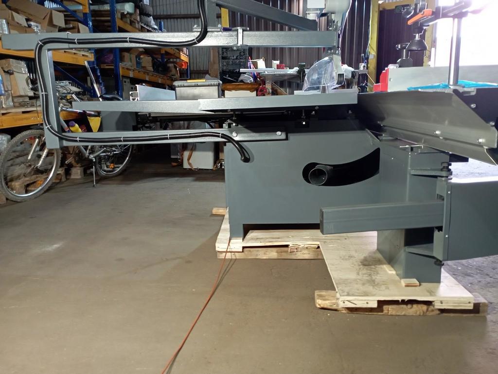 Главной особенностью станка является задняя упорная линейка с электроприводом, обеспечивающая быструю и точную установку размеров.