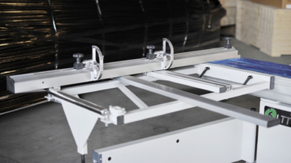 Для точной настройки подрезного устройства используются удобные рукоятки регулировки, расположенные со стороны оператора. Поворотная линейка позволяет устанавливать материал под углом от 90° до 45°, а усиленный форматный стол обеспечивает надежную поддержку даже при обработке крупногабаритных деталей.