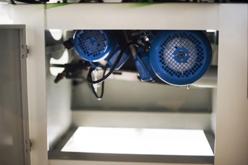 Пильный узел выполнен в литом корпусе, который надежно защищает механизмы от вибрации. В состав узла входят две пилы — основная и подрезная, каждая с отдельным электрическим двигателем. Такая компоновка исключает перегрузки и обеспечивает стабильную работу оборудования. Подрезная пила вращается в направлении подачи материала, что позволяет выполнять чистый раскрой ламинированных плит без сколов.