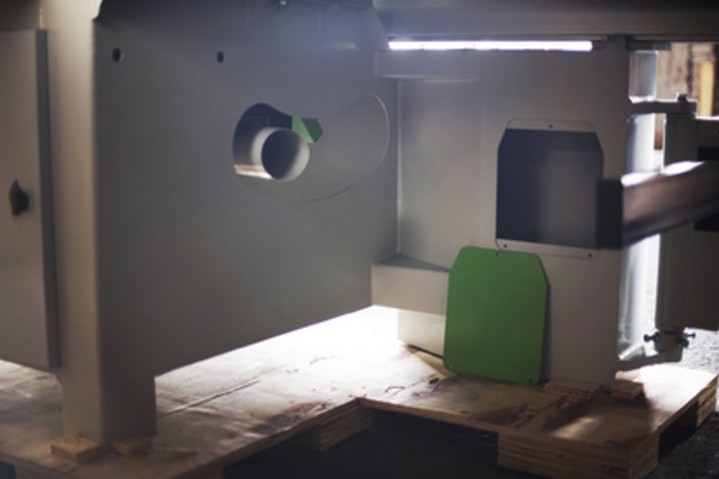 Пильный узел выполнен в литом корпусе, что гарантирует минимальный уровень вибраций. Конструкция включает основную пилу и подрезную пилу, каждая из которых оснащена отдельным электродвигателем. Такая система позволяет избежать перегрузок и обеспечивает стабильную работу оборудования.