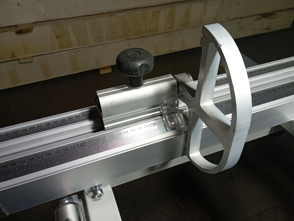 Для точной настройки подрезного устройства используются удобные рукоятки регулировки, расположенные со стороны оператора. Поворотная линейка позволяет устанавливать материал под углом от 90° до 45°, а усиленный форматный стол обеспечивает надежную поддержку даже при обработке крупногабаритных деталей.