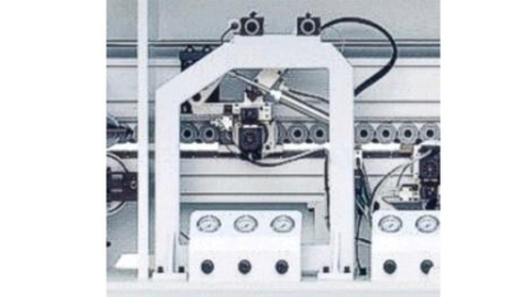 Фрезерный узел с двумя ВЧ-двигателями (18 000 об/мин), радиус фрезы R=2 мм, пневматическая перенастройка.