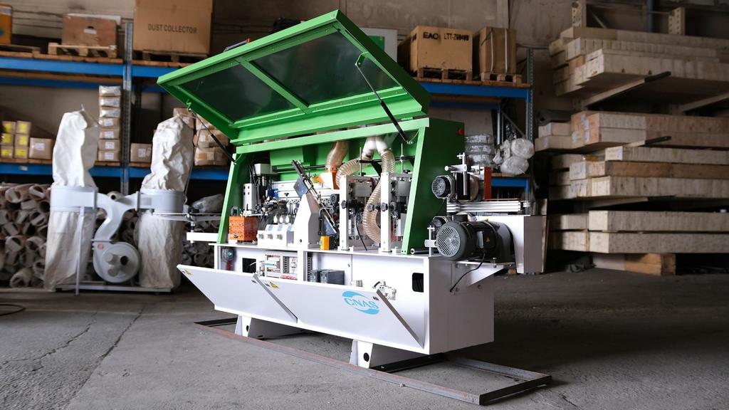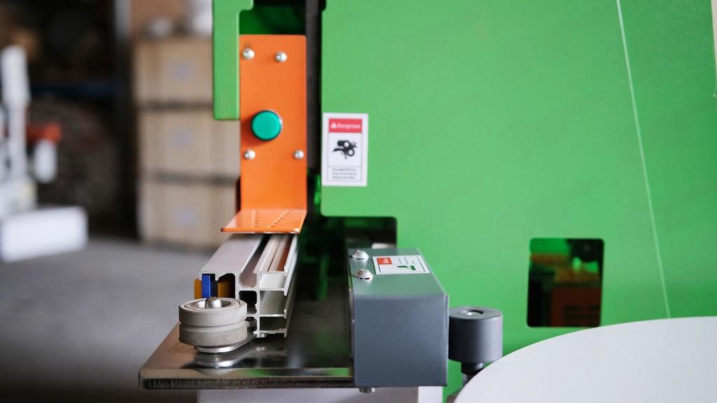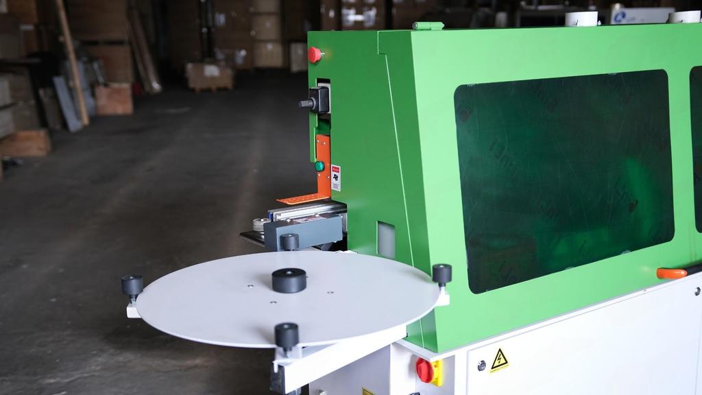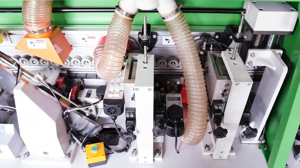 - Пневматическая система прижима гарантирует равномерное приклеивание кромки по всей длине заготовки;
