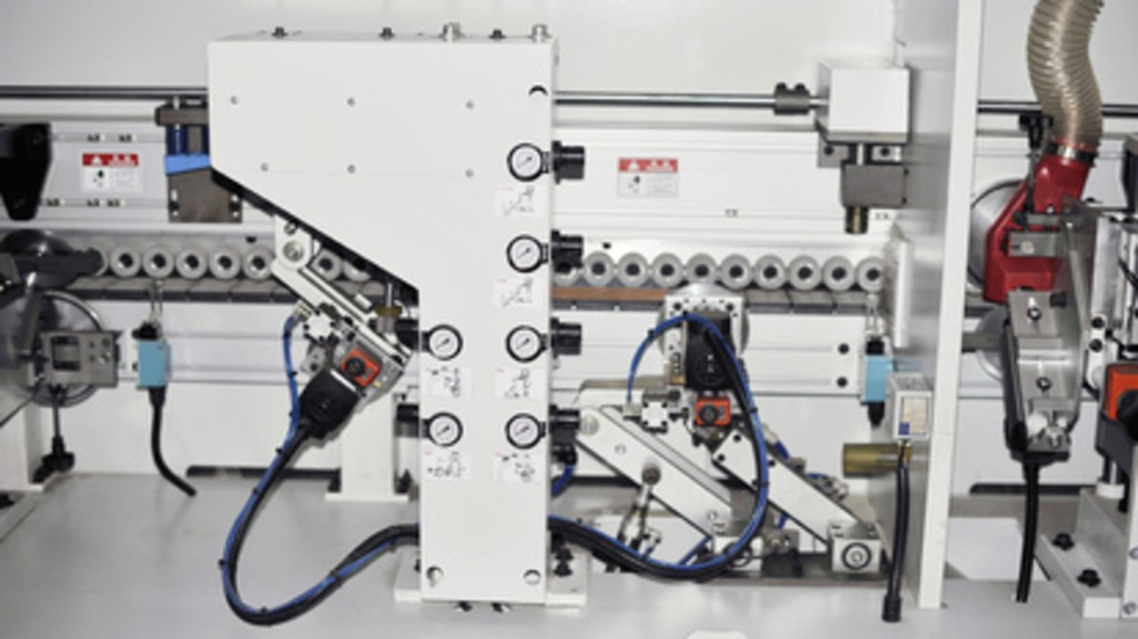 - Мощная пневмосистема обеспечивает стабильное прижатие и ровную подачу заготовок.