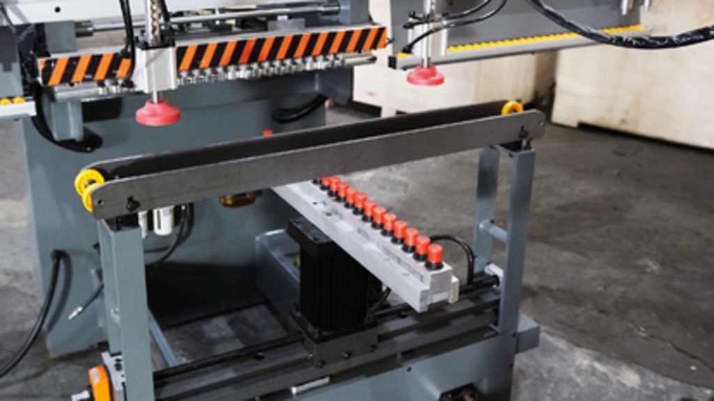Четыре пневмоприжима с обдувом — обеспечивают надёжную фиксацию заготовок и удаление пыли во время сверления.