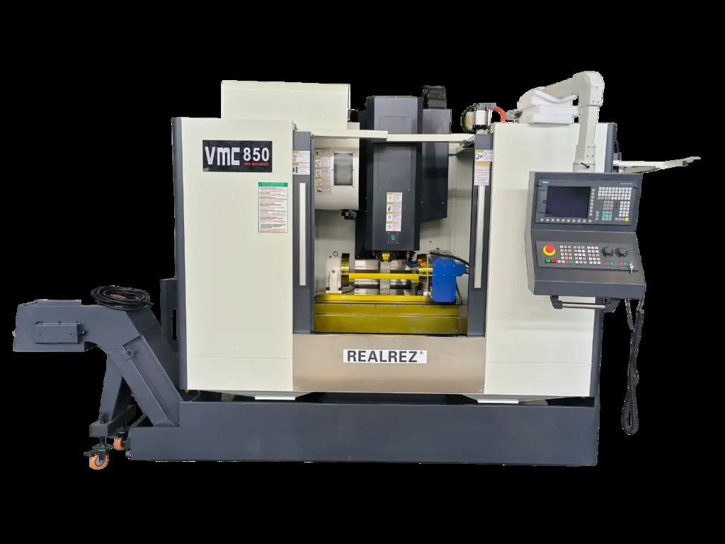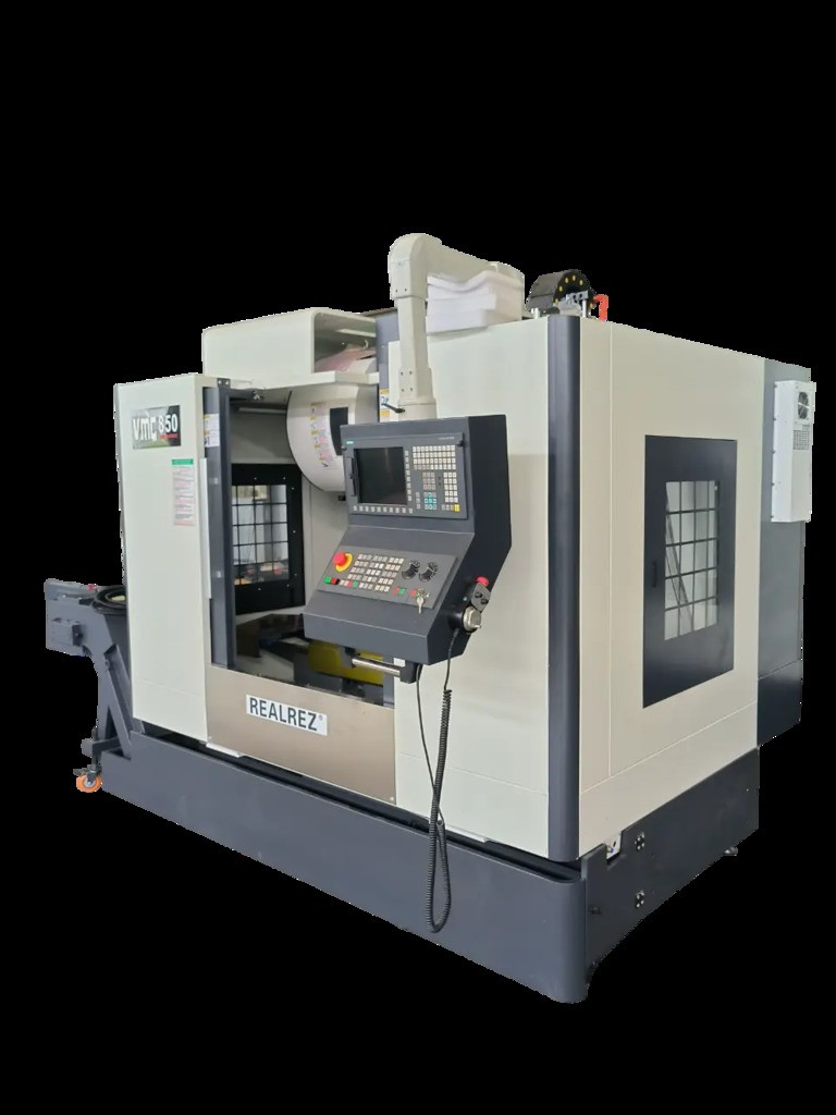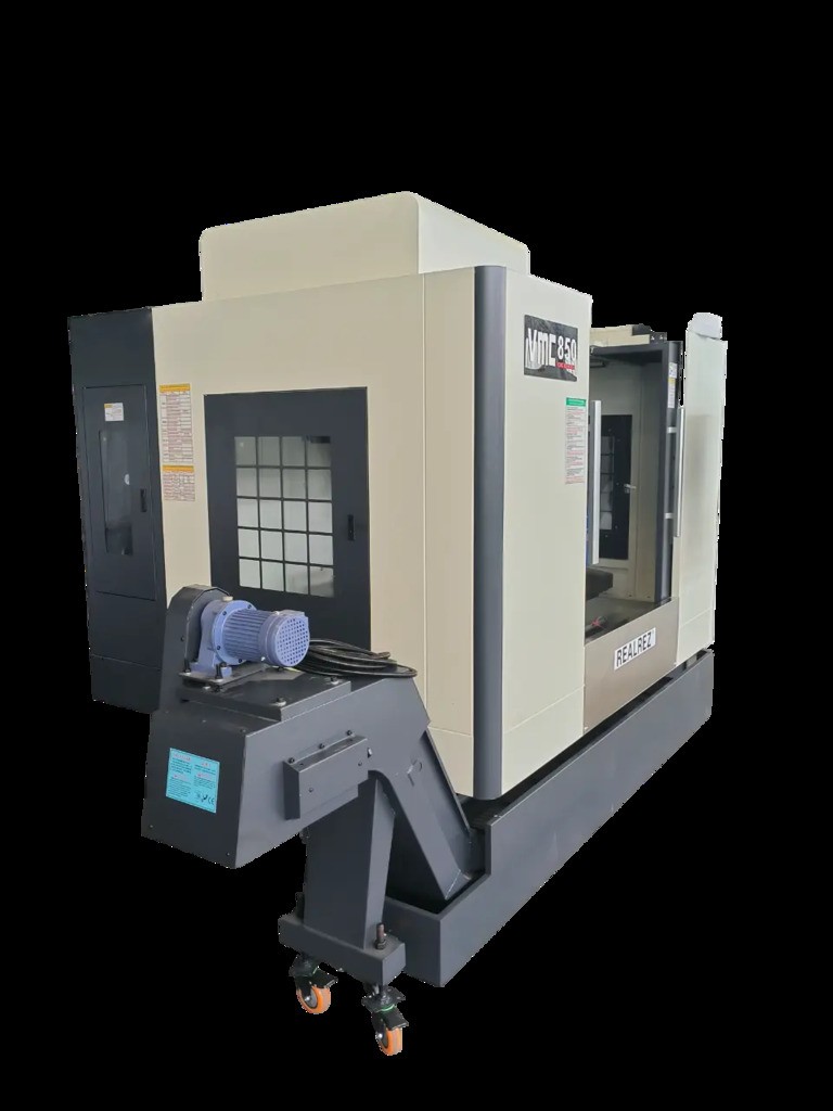VMC850 – вертикальный обрабатывающий центр с трехосным сервоприводом с прямым подключением по осям X, Y и Z. Конструкция и внешние размеры станка компактны и разумны. Вертикальный центр может осуществлять зажим сложных деталей, таких как различные диски, пластины, гильзы, кулачки, формы и т. д. А также может выполнять различные процессы, такие как сверление, фрезерование, растачивание, расширение, развертывание, жесткое нарезание резьбы и т. д. Производство мелкосерийных и средних партий продукции позволяет удовлетворить обработку сложных и высокоточных деталей. Оснащён четвертой осью вращения для удовлетворения требований обработки специальных деталей.