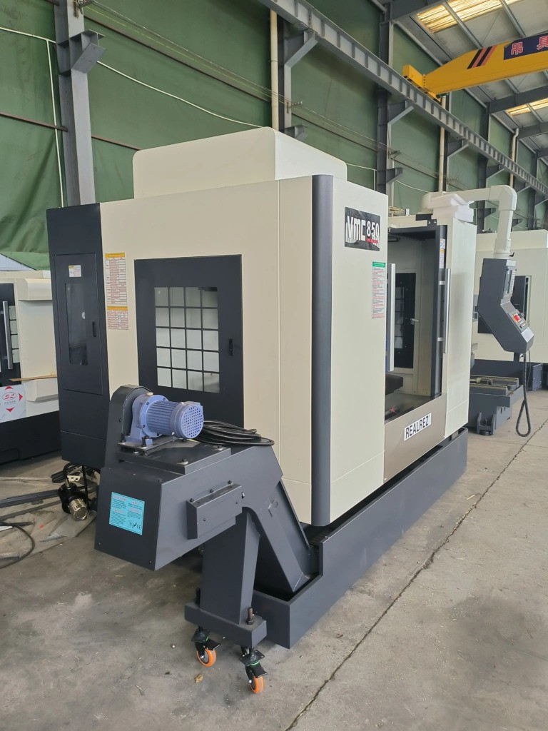 VMC850 – вертикальный обрабатывающий центр с трехосным сервоприводом с прямым подключением по осям X, Y и Z. Конструкция и внешние размеры станка компактны и разумны. Вертикальный центр может осуществлять зажим сложных деталей, таких как различные диски, пластины, гильзы, кулачки, формы и т. д. А также может выполнять различные процессы, такие как сверление, фрезерование, растачивание, расширение, развертывание, жесткое нарезание резьбы и т. д. Производство мелкосерийных и средних партий продукции позволяет удовлетворить обработку сложных и высокоточных деталей. Оснащён четвертой осью вращения для удовлетворения требований обработки специальных деталей.