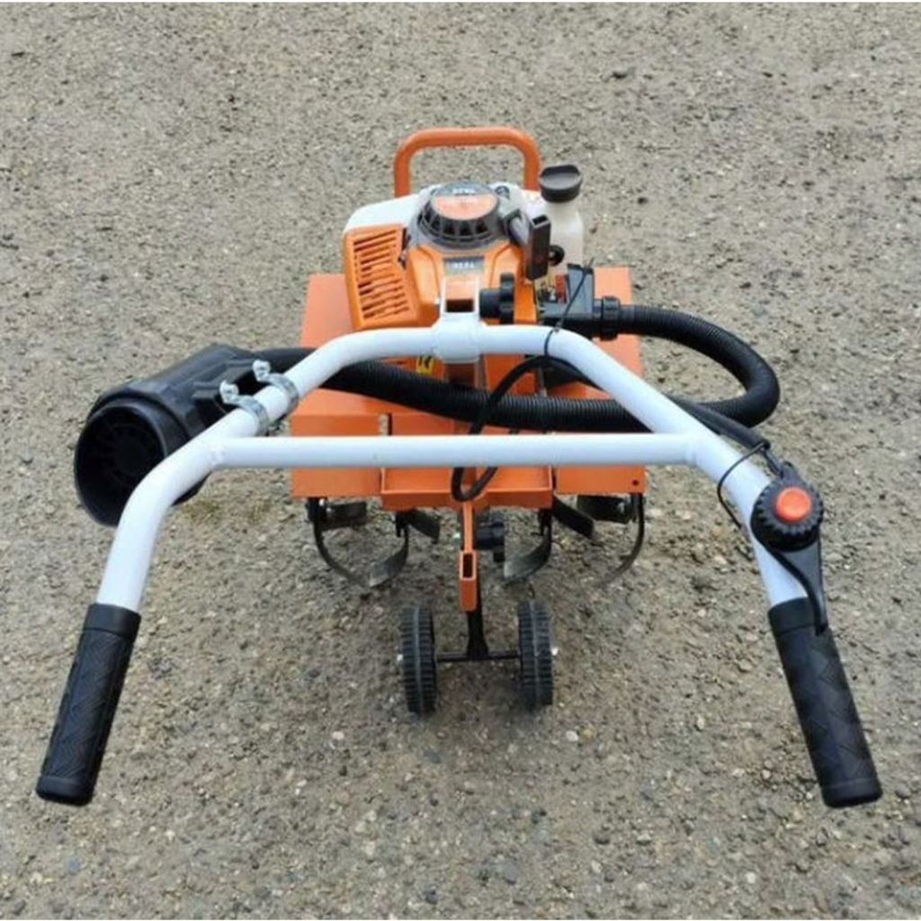 Фрезы диаметром 22,5 см эффективно рыхлят почву, измельчают комья и обеспечивают доступ воздуха и влаги к корням растений. Система ручного запуска с удобной рукояткой облегчает старт двигателя. При этом уровень шума не превышает 105 дБ, что делает работу комфортной.