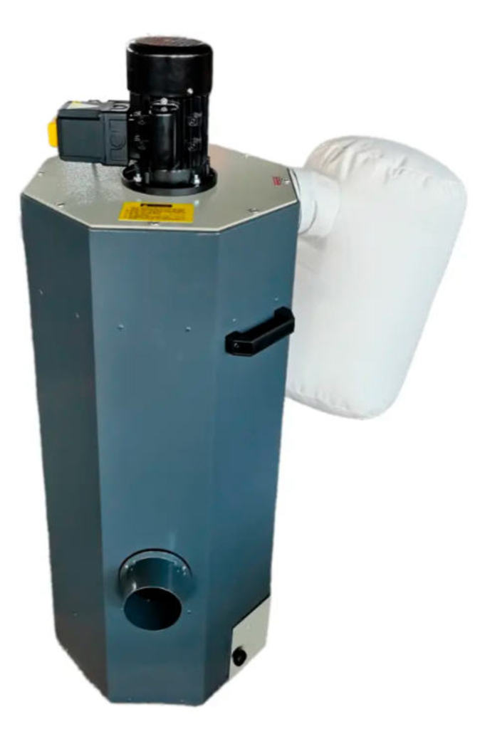Модель рассчитана на подключение к стандартной бытовой сети 230 В, что делает её универсальной для мастерских, гаражей, небольших производственных участков и сервисных центров. Вытяжка оснащена двумя всасывающими патрубками по 100 мм, что позволяет подключать одновременно два станка или распределять поток на разные рабочие зоны.