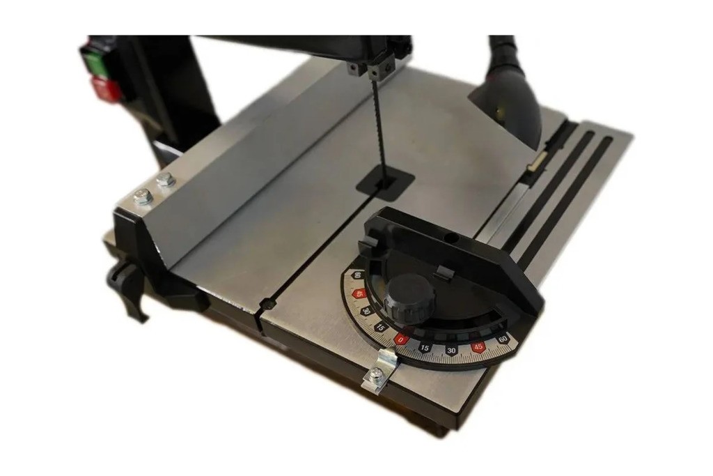 - Рабочий стол 313 × 302 мм с наклоном от 0° до 45° – возможность выполнять косые резы.