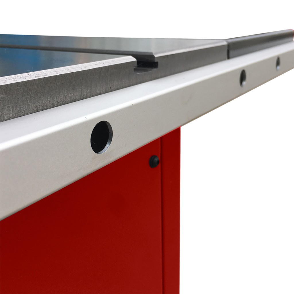 - Большой чугунный стол с чугунными расширителями для обеспечения максимальной опоры материала
