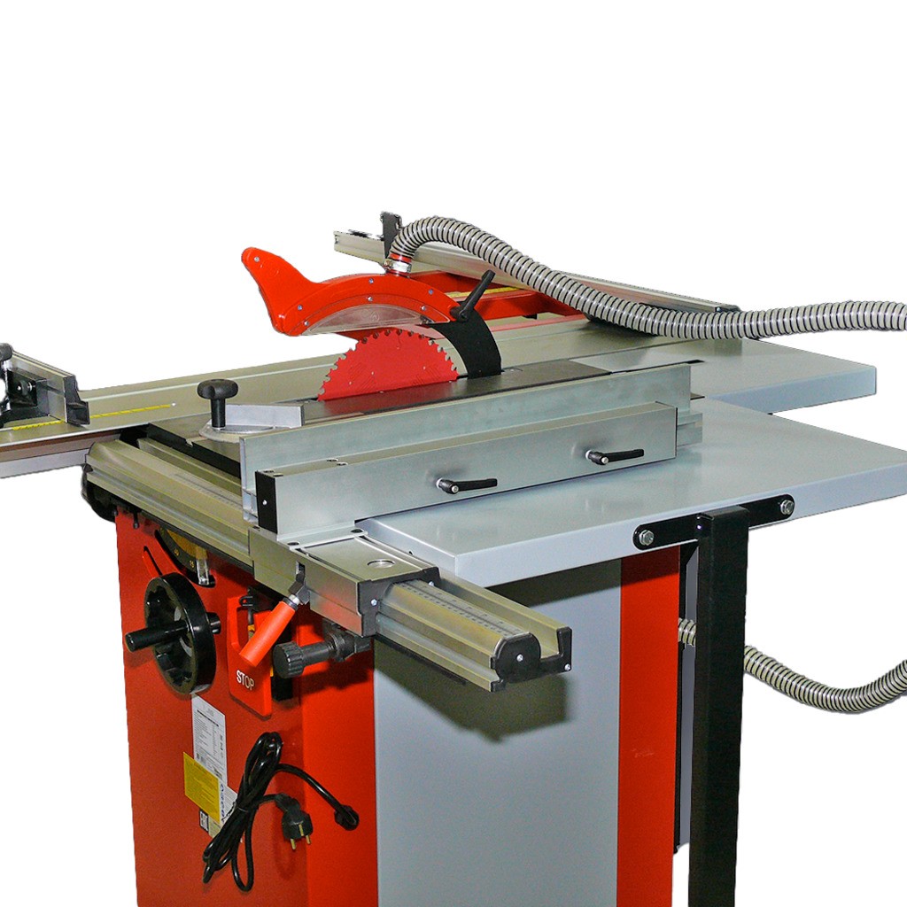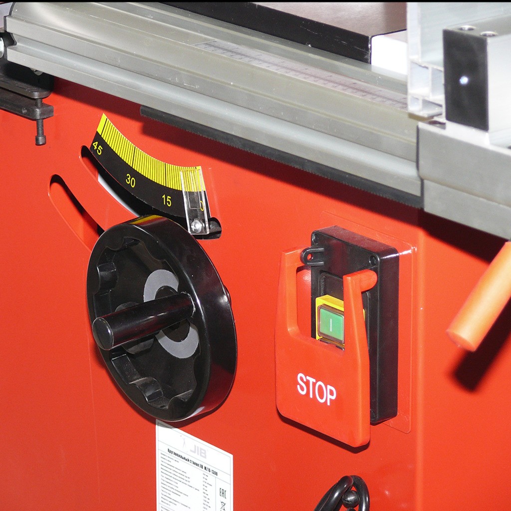 Круглопильный станок JIB MJ10-1600 – это мощный и надежный инструмент, предназначенный для высокоточной распиловки материалов. Оснащен двигателем мощностью 2,2 кВт с питанием от сети 230 В, что обеспечивает стабильную работу при интенсивной нагрузке. Максимальная пусковая электрическая мощность составляет 3,3 кВт с пусковым током 15А, что позволяет эффективно обрабатывать большие заготовки. Основной рабочий стол имеет размеры 300 х 670 мм, а боковые расширители обеспечивают дополнительное рабочее пространство: один размером 400 х 670 мм, другой – 300 х 325 мм. Подвижный стол размерами 1600 х 238 мм с ходом 1600 мм и упором длиной 1200 мм облегчает обработку крупногабаритных материалов. Дополнительно подвижный стол оснащен расширителем 600 х 450 мм для повышения удобства работы. Пильный диск диаметром 254 мм с посадочным диаметром 30 мм и толщиной 2,7 мм обеспечивает точный и чистый рез. Частота вращения шпинделя составляет 4750 об/мин, что позволяет выполнять работу быстро и качественно. Максимальная высота пропила составляет 80 мм при угле 90° и 55 мм при угле 45°. Максимальный продольный распил справа от пилы достигает 680 мм. Высота рабочего стола составляет 863 мм, что делает работу комфортной. Для поддержания чистоты на рабочем месте предусмотрена система аспирации с патрубком диаметром 100 мм. Компактные размеры станка в упаковке (800 х 700 х 1000 мм) и в собранном виде (2400 х 2700 х 1100 мм) позволяют легко разместить его в мастерской. Вес станка составляет 140 кг, что обеспечивает его устойчивость и надежность в работе.