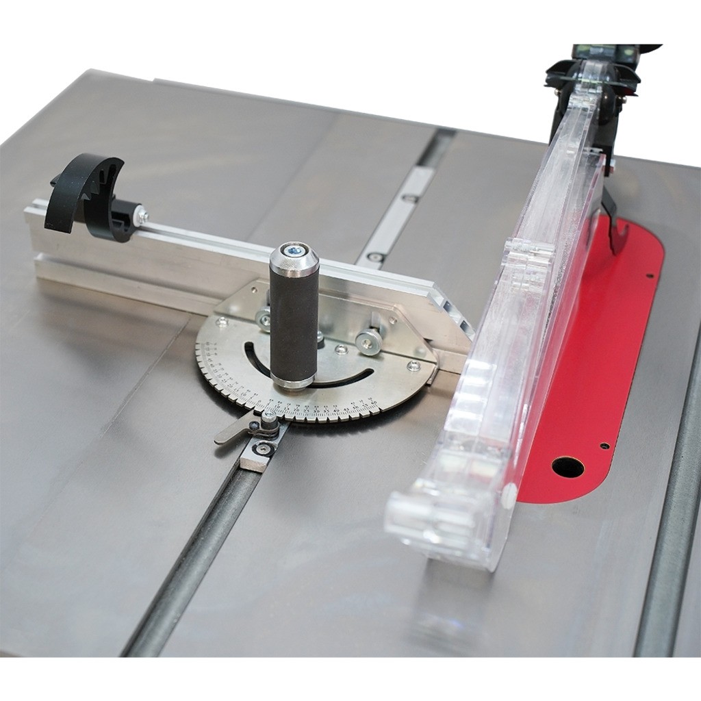- Большой чугунный стол с чугунными удлинителями для обеспечения максимальной опоры материала