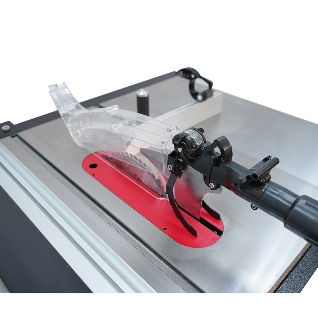 Рабочий стол размерами 740 х 512 мм может быть расширен до 740 х 1070 мм с помощью расширителей, что обеспечивает удобство при работе с большими заготовками. Для удаления опилок предусмотрен патрубок аспирации диаметром 100 мм, что позволяет поддерживать чистоту на рабочем месте.