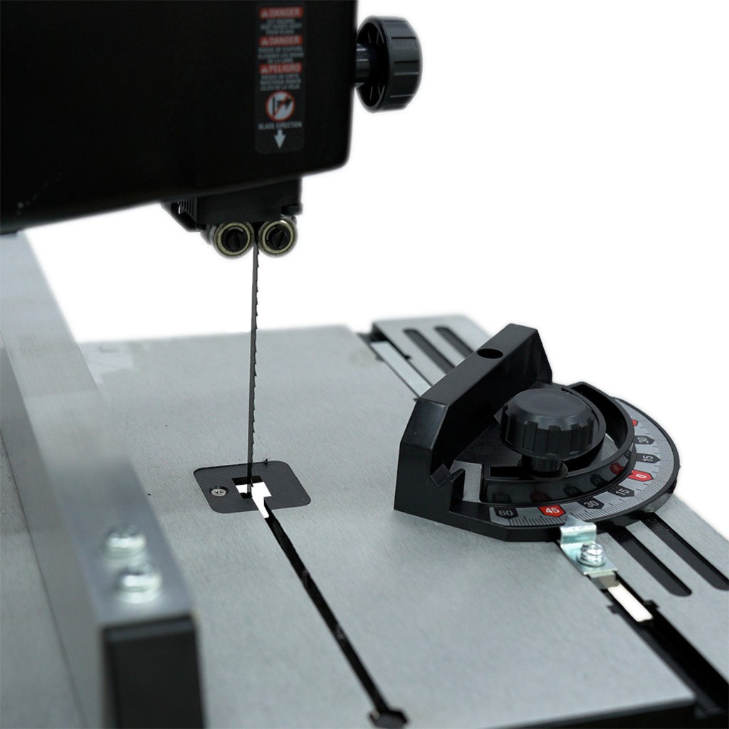 - Прочный литой алюминиевый стол: обеспечивает стабильную и точную работу при распиле.