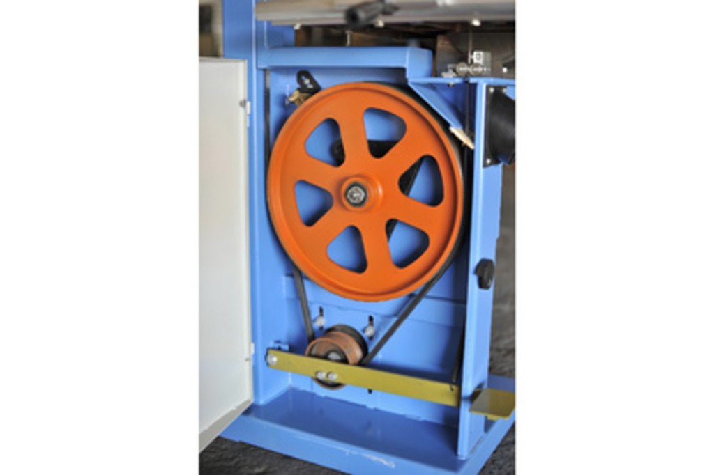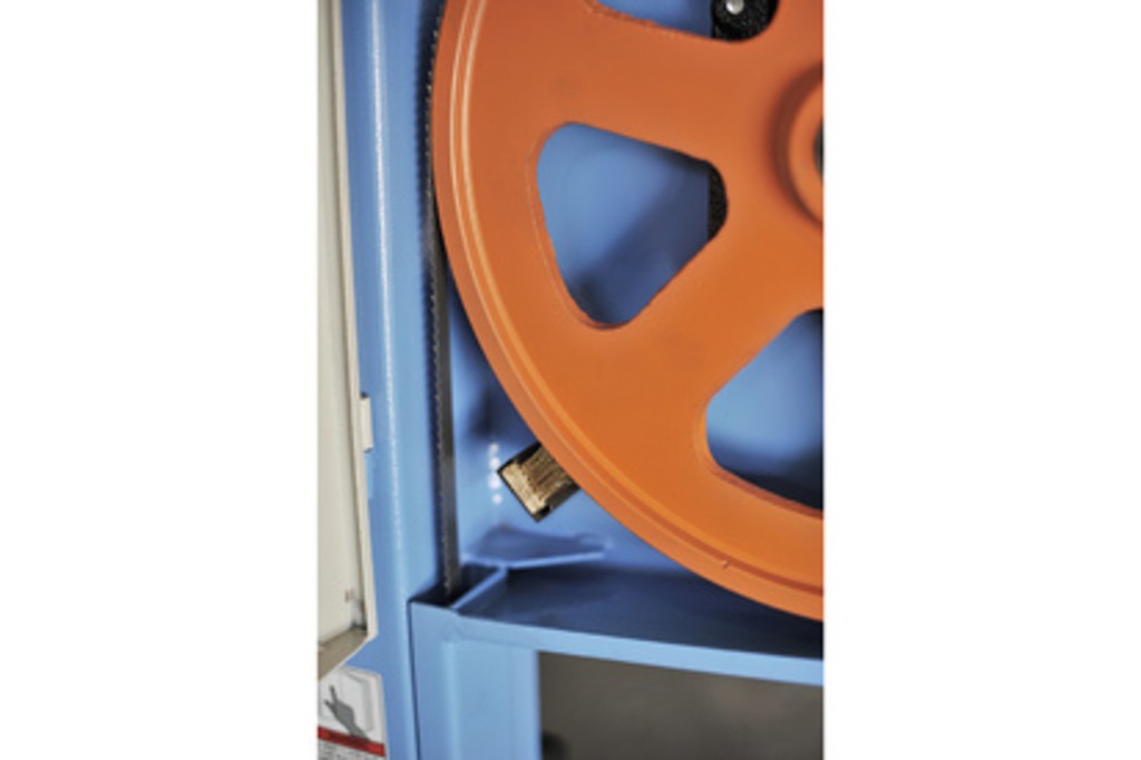 Чугунные шкивы диаметром 400 мм с большой массой и инерцией обеспечивают ровный ход пилы.