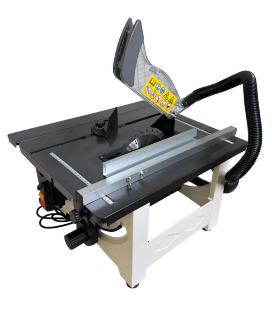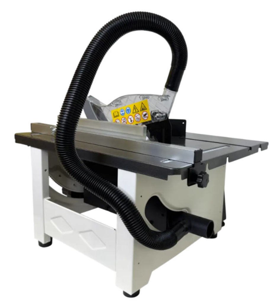 Прочное металлическое основание с антискользящими пластиковыми упорами обеспечивает устойчивость оборудования и снижает вибрацию, что положительно сказывается на точности распила. Компактная конструкция позволяет удобно размещать пилу на верстаке или рабочем столе, экономя пространство при сохранении функциональности.