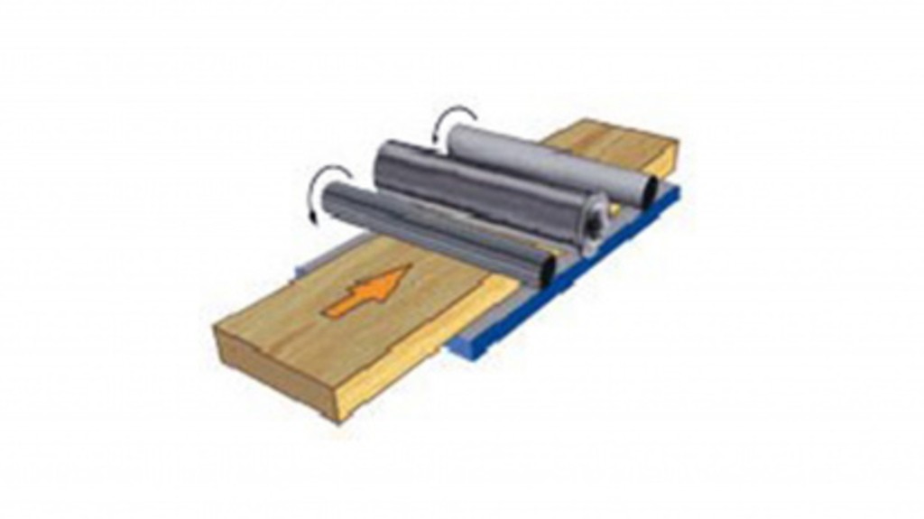 Ролики в столе. Два холостых ролика способствуют лёгкому скольжению заготовок при подаче.