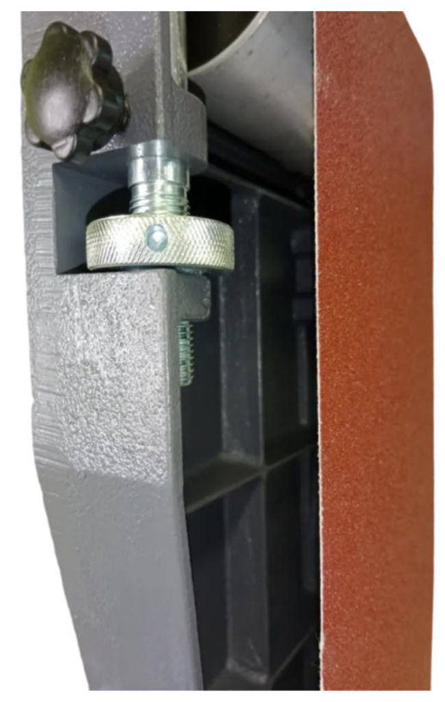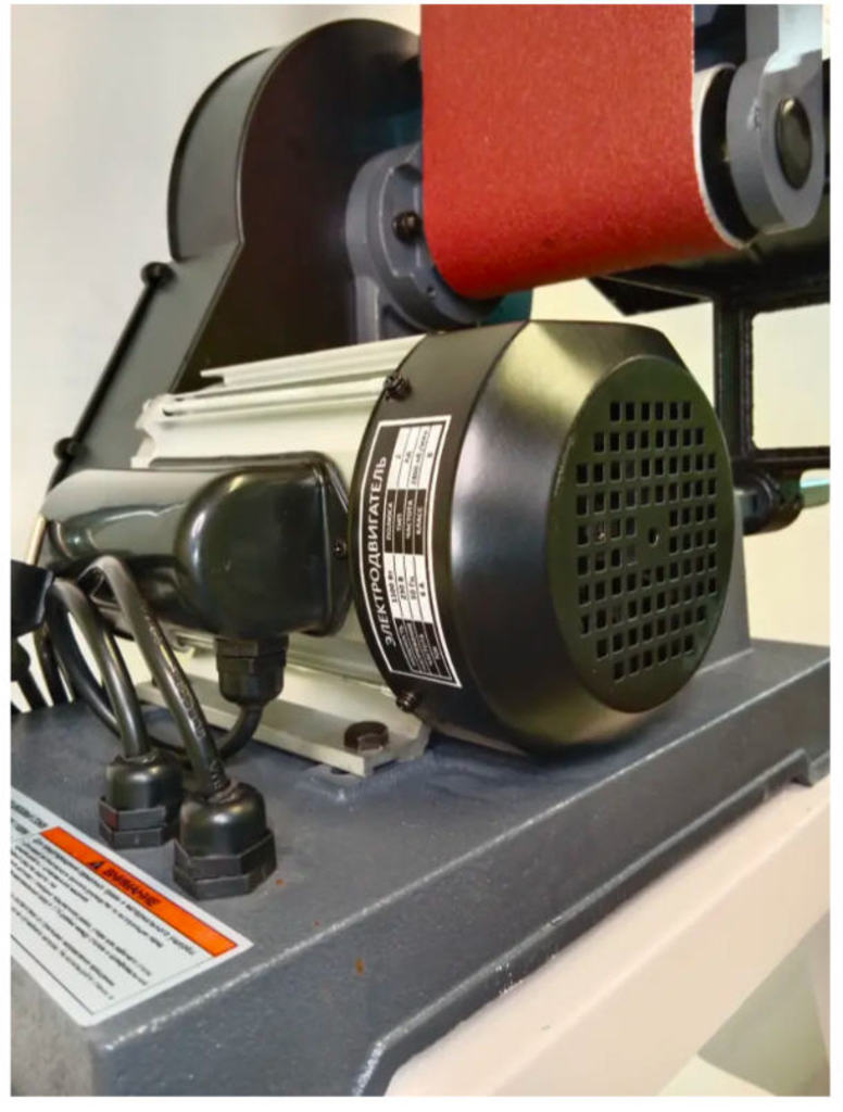 Корпус устройства выполнен из литого алюминия, что обеспечивает высокую жесткость конструкции и минимизацию вибраций при нагрузке. Модель оснащена двумя полноценными рабочими столами — отдельный под ленточное и отдельный под дисковое шлифование. Такое решение экономит время: переключение между операциями происходит мгновенно и не требует перенастройки столов. На обоих столах предусмотрены пазы для угловых упоров, что повышает точность обработки.