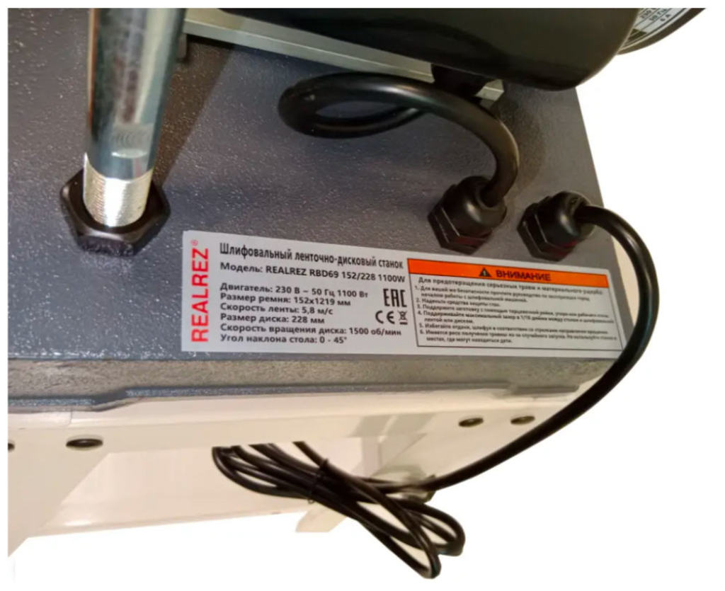 Станок шлифовальный ленточно-дисковый REALREZ RBD69 152/228, 1100Вт, 220В