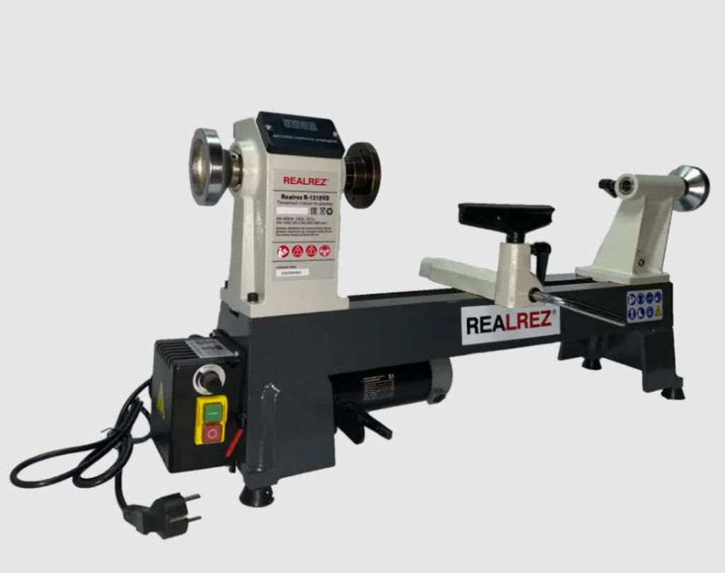 Токарный станок по дереву REALREZ R-1218VD 550 W — надёжное профессиональное оборудование для точной ручной обработки деревянных заготовок. Модель идеально подходит как для мебельных производств, так и для небольших столярных мастерских, обеспечивая высокое качество проточки, шлифовки и полировки деталей. Благодаря компактным размерам и наличию удобного упора станок легко настраивается под любые задачи мастера.