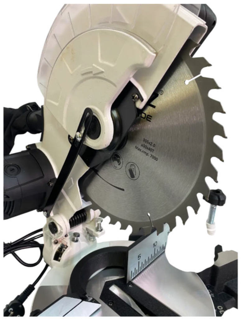 - Прозрачная защита пильного диска улучшает видимость заготовки.