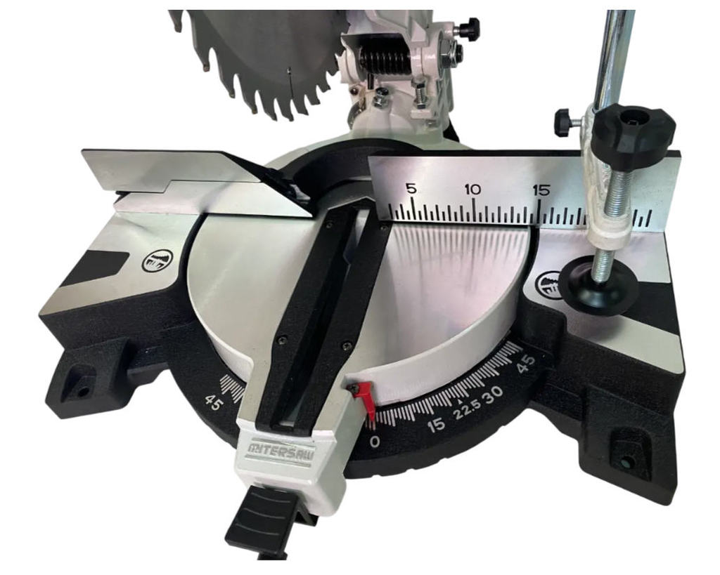 - Интегрированная система верхнего и нижнего боковых упоров обеспечивает дополнительную жесткость для более точных торцевых резов и резов под углом.