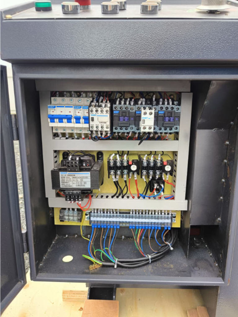 Колонная конструкция станка обеспечивает высокую жесткость и устойчивость, благодаря чему линия реза остаётся ровной и точной даже при работе с крупными деталями. Массивная рама и продуманное расположение рабочих узлов значительно увеличивают срок службы агрегата и позволяют ежедневно выполнять большие объёмы резки.