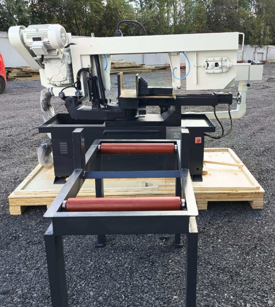 Ленточнопильный станок колонного типа GB4033X — это профессиональное оборудование, предназначенное для высокоточной резки массивных металлических заготовок, включая трубы, круглый прокат, балки и элементы металлоконструкций. Благодаря поворотной раме станок обеспечивает рез под углом до 60°, что делает его отличным решением для производства, где требуется гибкость при обработке материалов.
