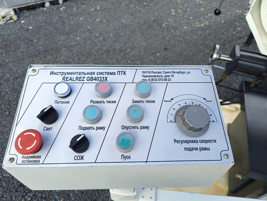Модель GB4033X относится к полуавтоматическому типу. Станок оснащён гидравлической станцией, что существенно облегчает управление: зажим заготовки в тисках, подъем и опускание пильной рамы происходят автоматически по командам с удобного пульта оператора. Это не только повышает производительность, но и снижает физическую нагрузку на персонал.