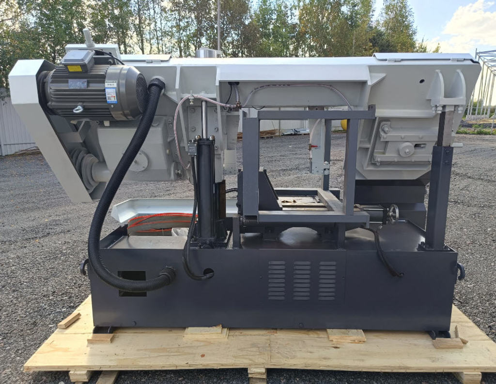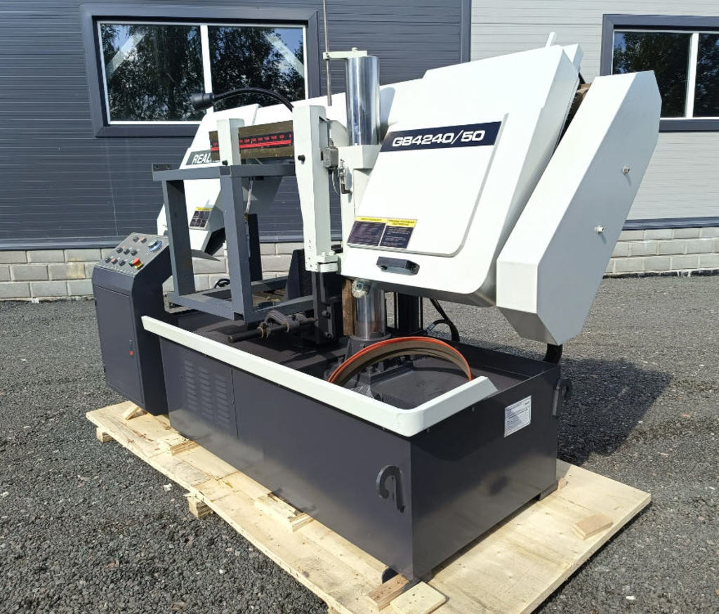 Модель REALREZ GB4240/50 относится к полуавтоматическому типу. Станок оснащён гидравлической станцией, что существенно облегчает управление: зажим заготовки в тисках, подъем и опускание пильной рамы происходят автоматически по командам с удобного пульта оператора. Это не только повышает производительность, но и снижает физическую нагрузку на персонал.