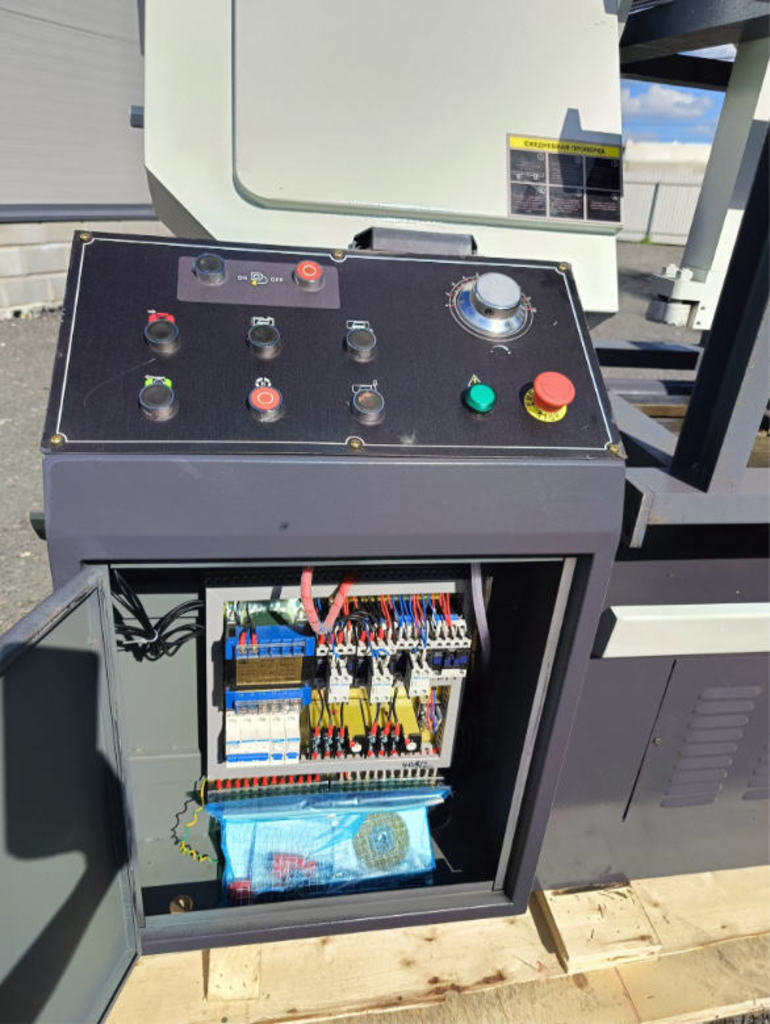 Колонная конструкция станка обеспечивает высокую жесткость и устойчивость, благодаря чему линия реза остаётся ровной и точной даже при работе с крупными деталями. Массивная рама и продуманное расположение рабочих узлов значительно увеличивают срок службы агрегата и позволяют ежедневно выполнять большие объёмы резки.