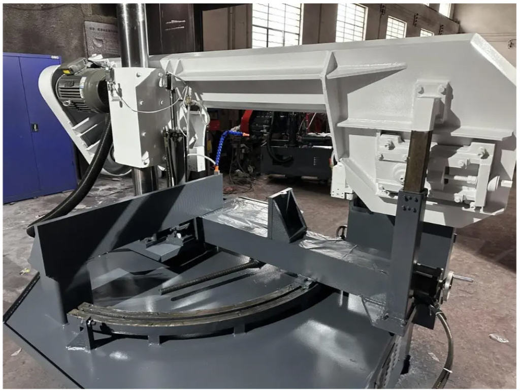 Ленточнопильный станок колонного типа GB4240X — это профессиональное оборудование, предназначенное для высокоточной резки массивных металлических заготовок, включая трубы, круглый прокат, балки и элементы металлоконструкций. Благодаря поворотной раме станок обеспечивает рез под углом до 60°, что делает его отличным решением для производства, где требуется гибкость при обработке материалов.